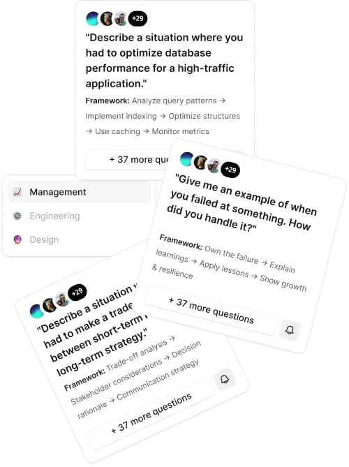 Download actual interview questions from Amazon, Apple, Google, Meta, and other top tech companies - plus the exact frameworks to ace them. Used by 500+ professionals to land $250K+ roles.